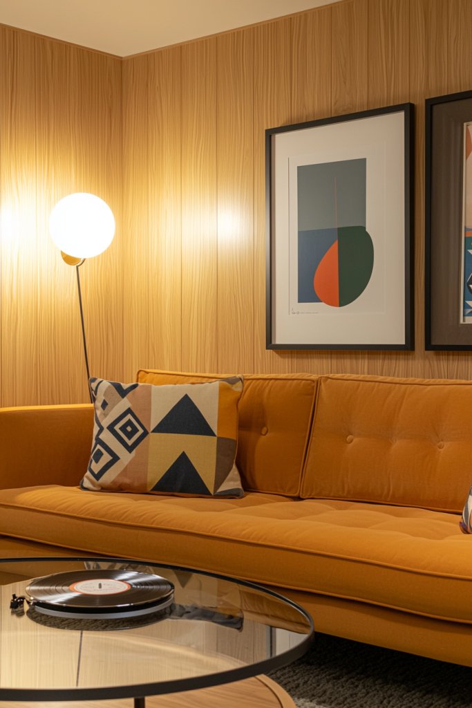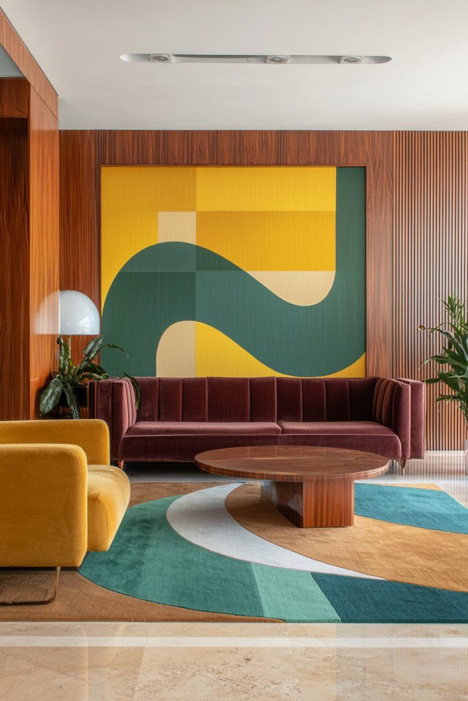 Incorporating geometric patterns can elevate your space, whether through wallpaper, rugs, or textiles. Imagine a striking accent wall adorned with a vibrant, angular design, instantly transforming your room into a retro haven.