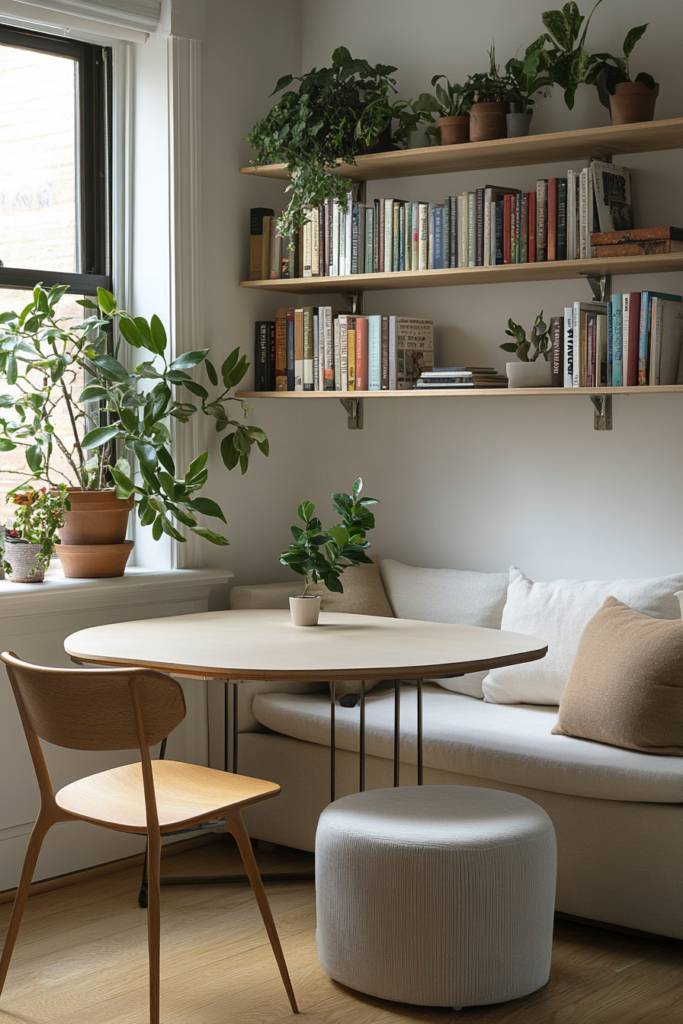 Consider an ottoman that serves as both seating and storage for blankets or out-of-season items. Wall-mounted shelves can replace bulky bookcases while displaying your favorite decor, keeping the floor area clear. A foldable dining table can expand when needed but tuck away neatly afterward.