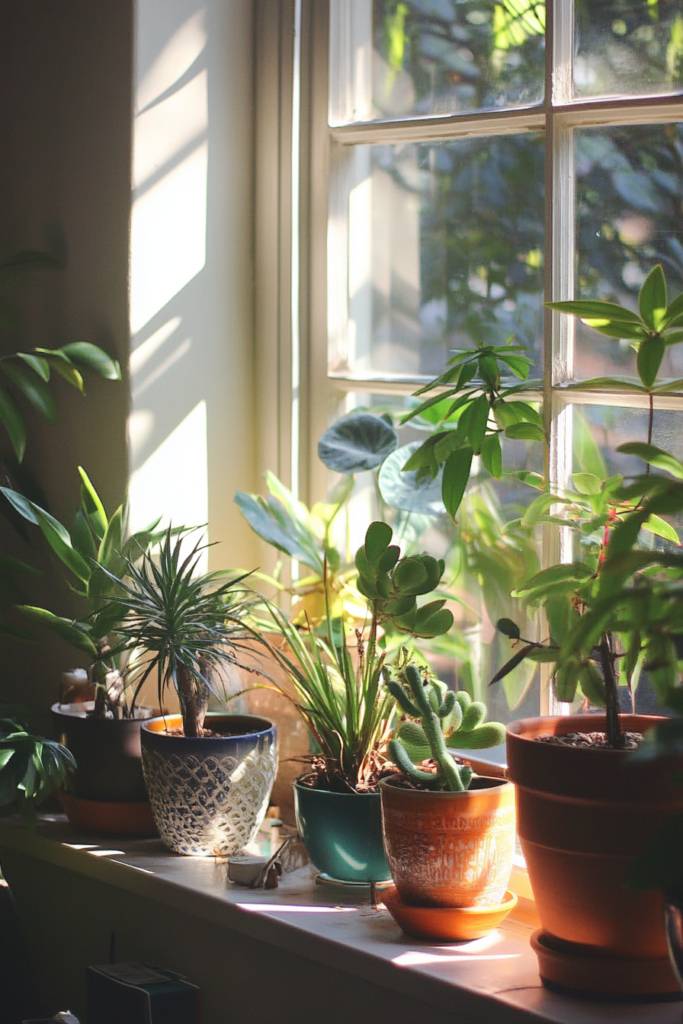 Don’t forget to guarantee your plants have adequate drainage to prevent water damage to the sill. Grouping plants together can create a mini garden feel, making the most of that often-overlooked space.