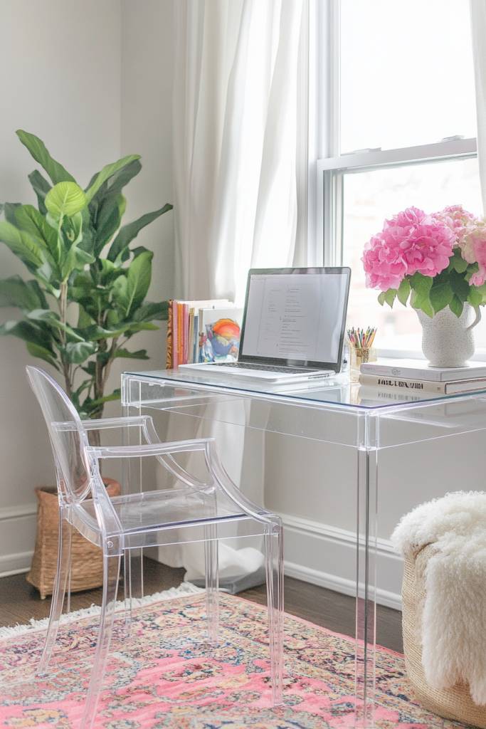 Clear acrylic furniture is a game changer for small spaces, offering a sleek, modern look without the visual bulk. These pieces create an illusion of openness, making your room feel larger and airier. When choosing acrylic furniture, consider a clear coffee table or a set of stylish chairs. They blend seamlessly with any decor and won’t overwhelm your space.