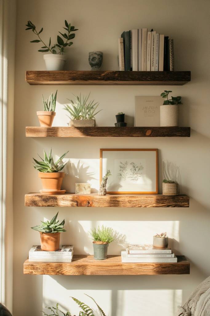 Although small spaces can feel limiting, installing floating shelves offers an elegant solution to enhance both style and functionality. These shelves create additional storage without taking up valuable floor space, allowing your room to feel more open. You can customize them to fit your décor and needs, whether you want to display books, plants, or decorative items.