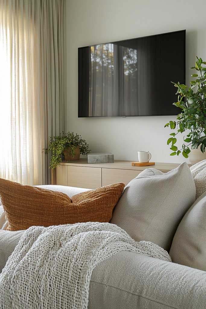 A lively area rug can anchor the space, adding texture and warmth while bringing together the room’s color palette. Don’t shy away from layered blankets in various patterns; they invite comfort and encourage snuggling during movie nights.