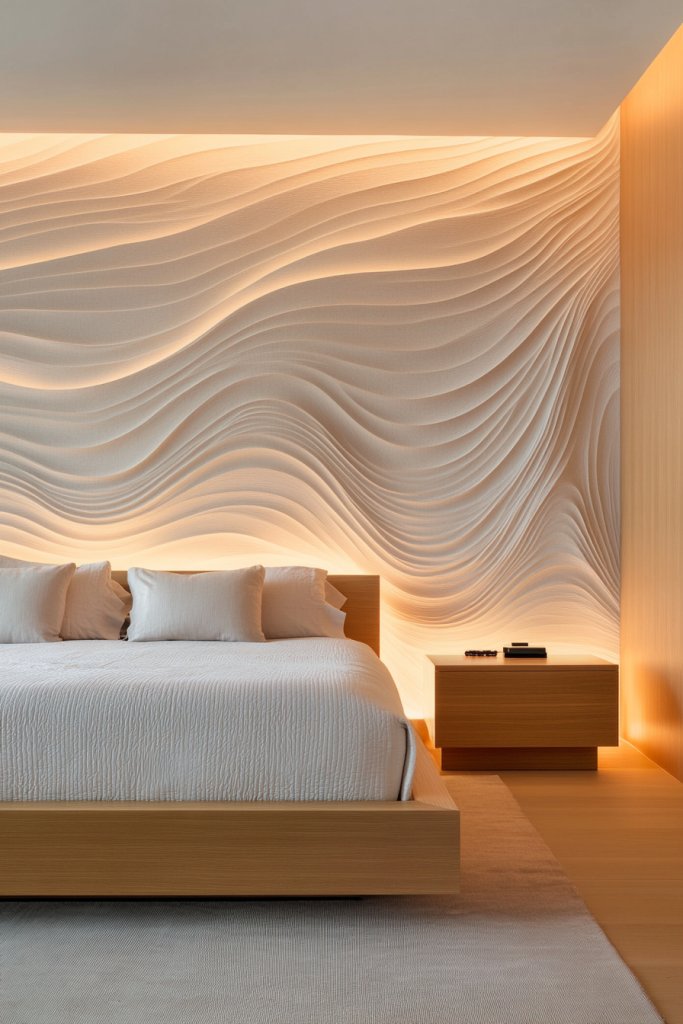 Craving a space that feels natural and calming? Wavy wall panels introduce organic movement and softness, transforming your bedroom into a serene retreat. The flowing lines add visual rhythm that relaxes the mind.