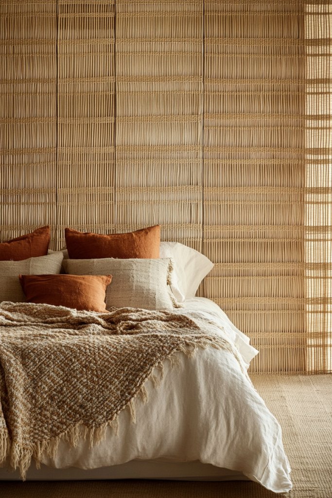 Craving a relaxed, bohemian vibe? Woven rattan or cane panels bring natural texture and a laid-back charm to your bedroom. They add tactile interest and a breezy, organic feel that’s both stylish and calming.