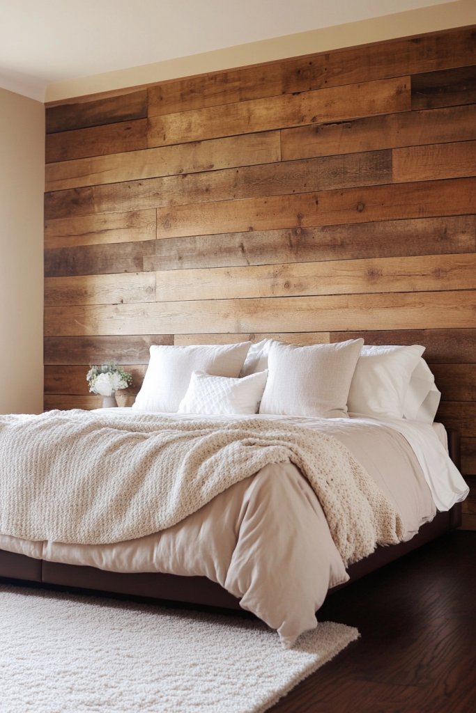 Craving that cozy, warm, farmhouse feel? Reclaimed wood planks bring rustic charm and character into your bedroom, giving it a lived-in, welcoming vibe. They add texture and history, making your space feel uniquely yours.