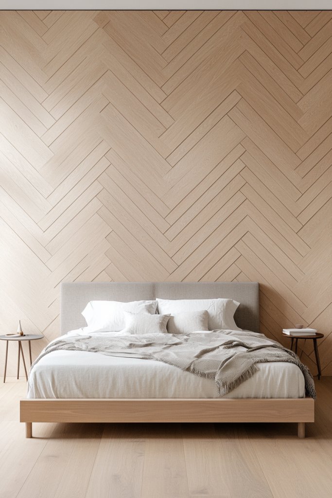 Herringbone paneling adds instant elegance and a sense of craftsmanship. It’s a statement feature that showcases your design eye. Ready to turn your walls into a focal point? This pattern elevates any bedroom with timeless style and modern flair.