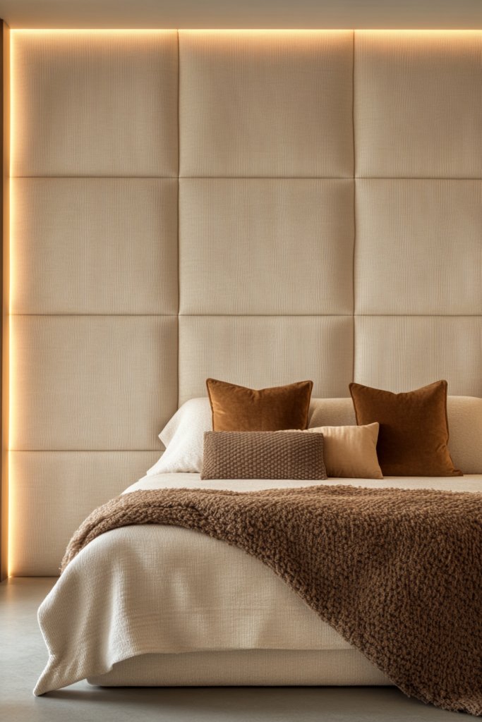 9. Fabric-Wrapped Wall Panels for Soft Texture