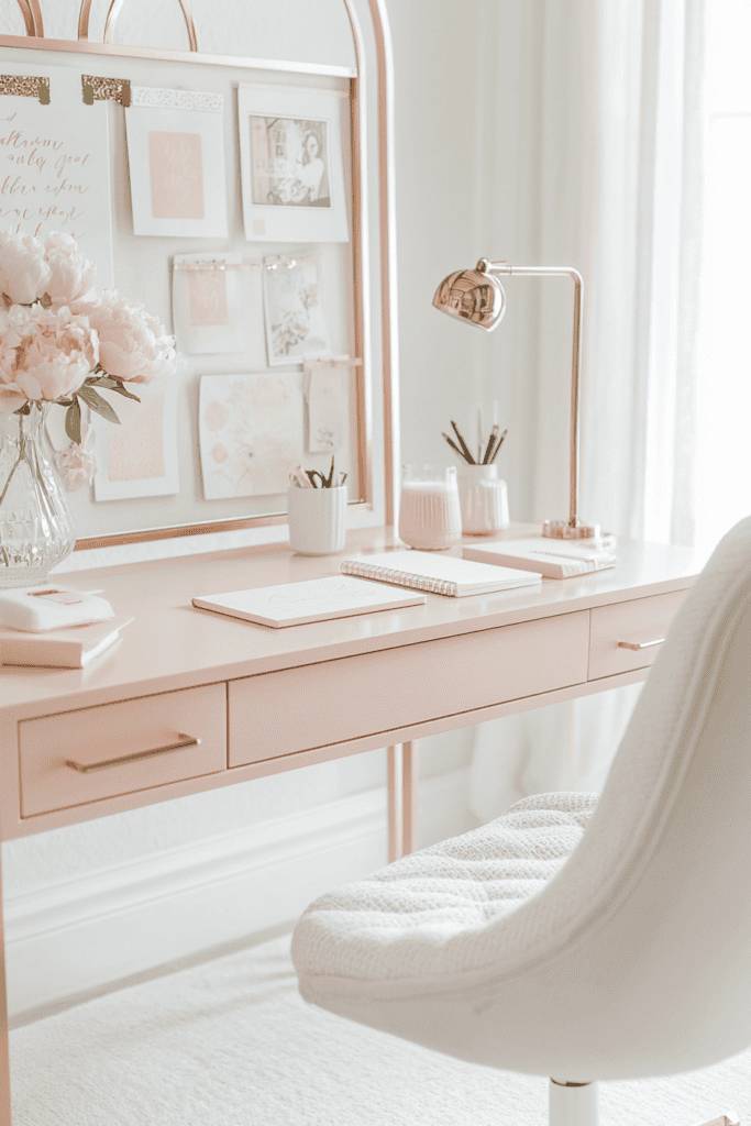 Natural lighting plays a key role in setting the tone for a minimalist workspace. Sheer curtains allow sunlight to filter through, creating a bright and inviting atmosphere. Keeping the color palette neutral with soft beige and warm browns ensures a calming effect that enhances concentration. Decorative yet practical pieces, such as linen-covered books and handcrafted pottery, add subtle character. This workspace design is ideal for those who seek simplicity, functionality, and a tranquil environment for creativity and productivity.
