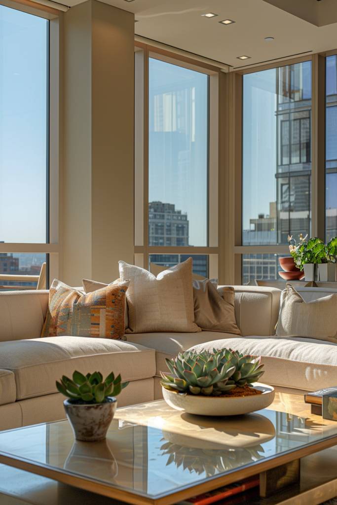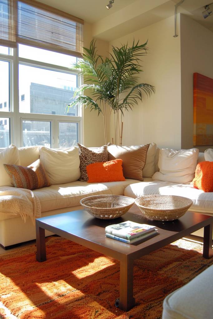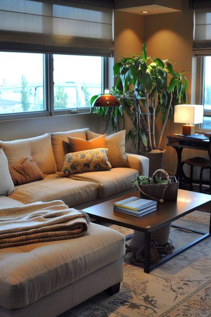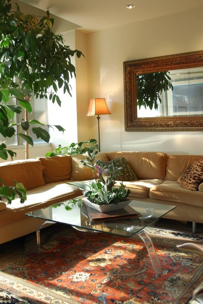 You can also mix textures and colors by adding a peace lily or a fiddle leaf fig, both of which create stunning focal points. Hanging planters can add vertical interest, while a small succulent arrangement on your coffee table brings a modern touch.