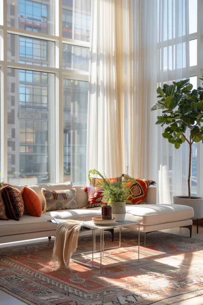 To create a warm and inviting atmosphere in your living room, using curtains can be a game changer. They not only frame your windows beautifully but also add texture and color, transforming a stark space into a cozy retreat. Opt for soft, flowing fabrics like linen or sheer cotton to let natural light filter through, creating a gentle glow that enhances the room’s ambiance.