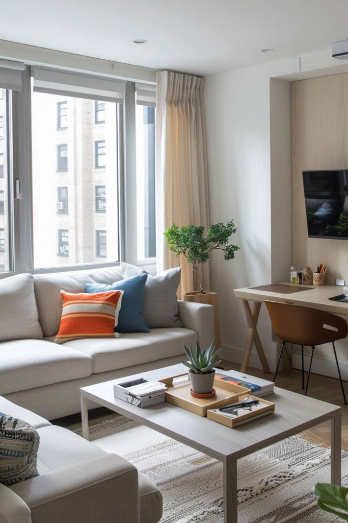When you’re living in an apartment, every square foot counts, so embracing multi-functional furniture can transform your space into a stylish and practical haven. Think about a sleek sofa bed that effortlessly morphs from a cozy seating area to a restful sleeping spot for guests. Or consider an ottoman that doubles as a storage chest—perfect for stashing away blankets or books.