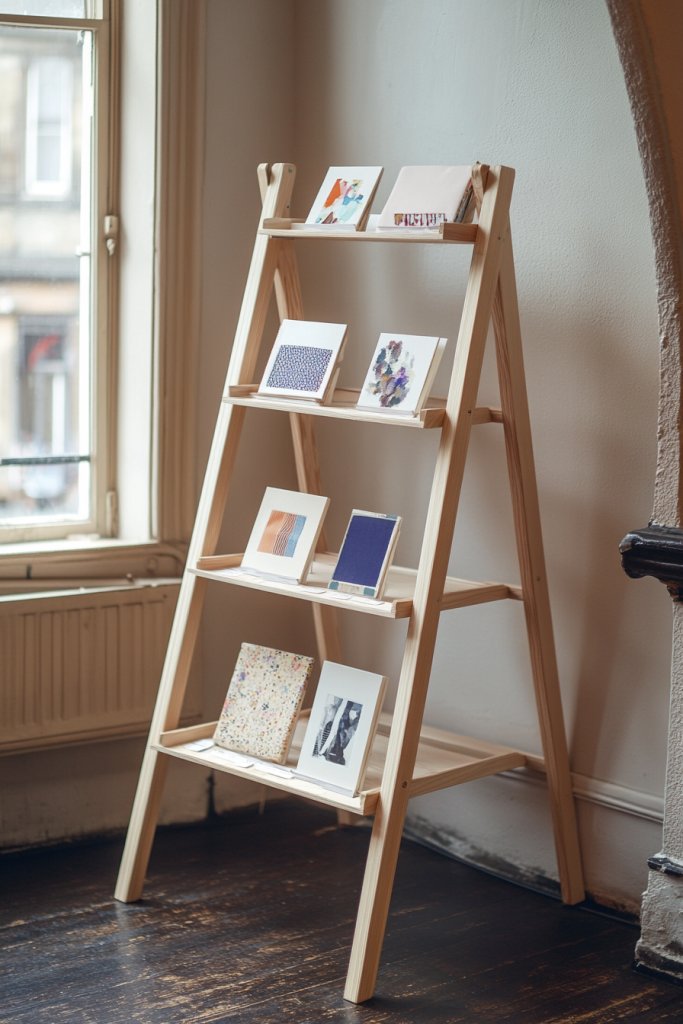A tiered art ladder transforms a simple corner into a dynamic showcase of your evolving style. It encourages you to experiment with layering and mixing media. Every new piece added boosts your confidence and sense of achievement. It’s a practical, attractive way to celebrate your artistic journey and keep your space lively and inspiring.