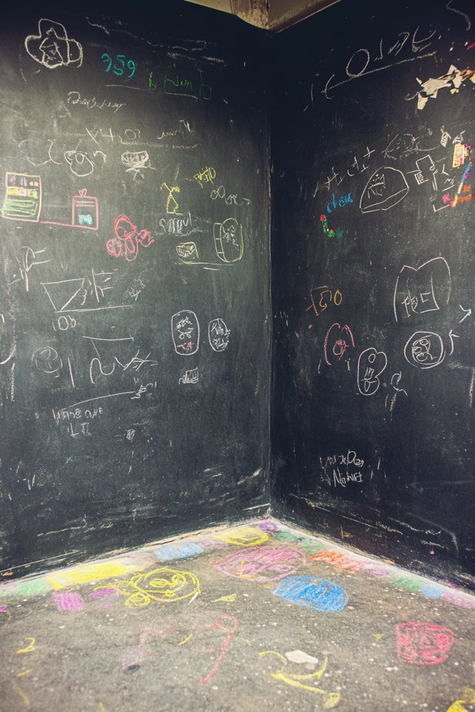 11. Artistic Corner with a Chalkboard Wall and Colorful Murals
