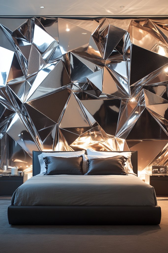 Use accent colors on the walls that complement the metallic sheen, like warm whites or deep jewel tones. Incorporate small metallic decorative elements, like stars or geometric shapes, for added interest.