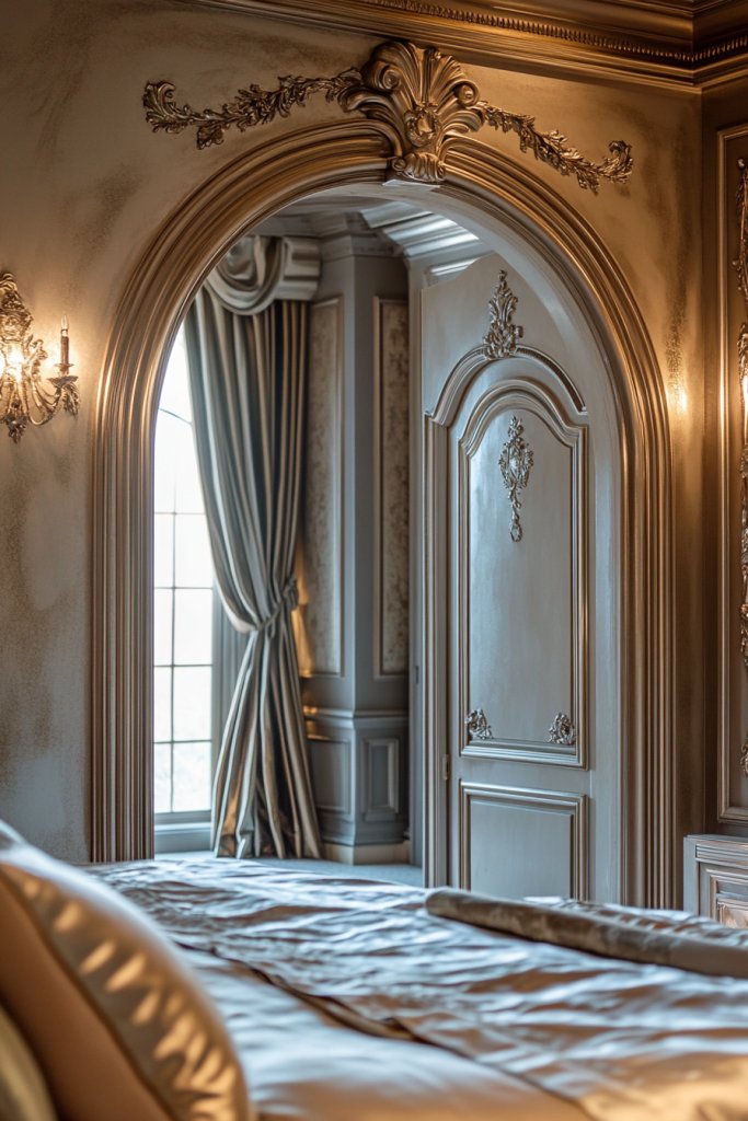 Want to add architectural grandeur without major renovations? Classic arched doorways and decorative frames evoke the glamour of the Art Deco era, transforming ordinary spaces into statements of elegance. Imagine a sleek arched doorway with intricate moldings framing the entrance, leading into a cozy bedroom.