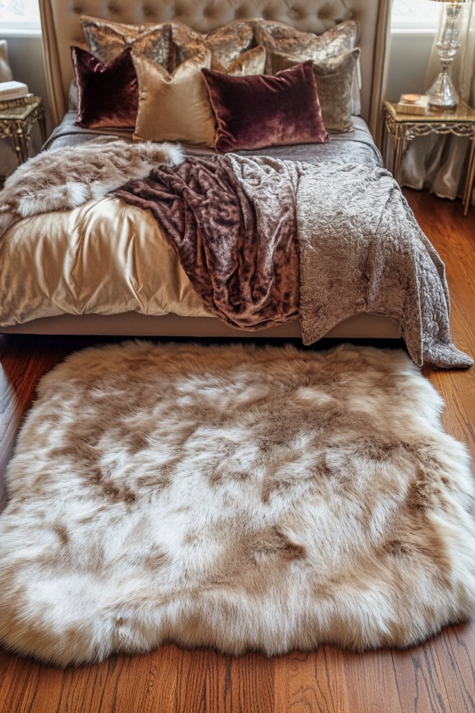 Want to add instant comfort and luxury to your bedroom? Faux fur rugs and textured throws give you that plush, inviting vibe without the cruelty or cost of real fur. It’s an easy way to make your space feel warm and stylish.