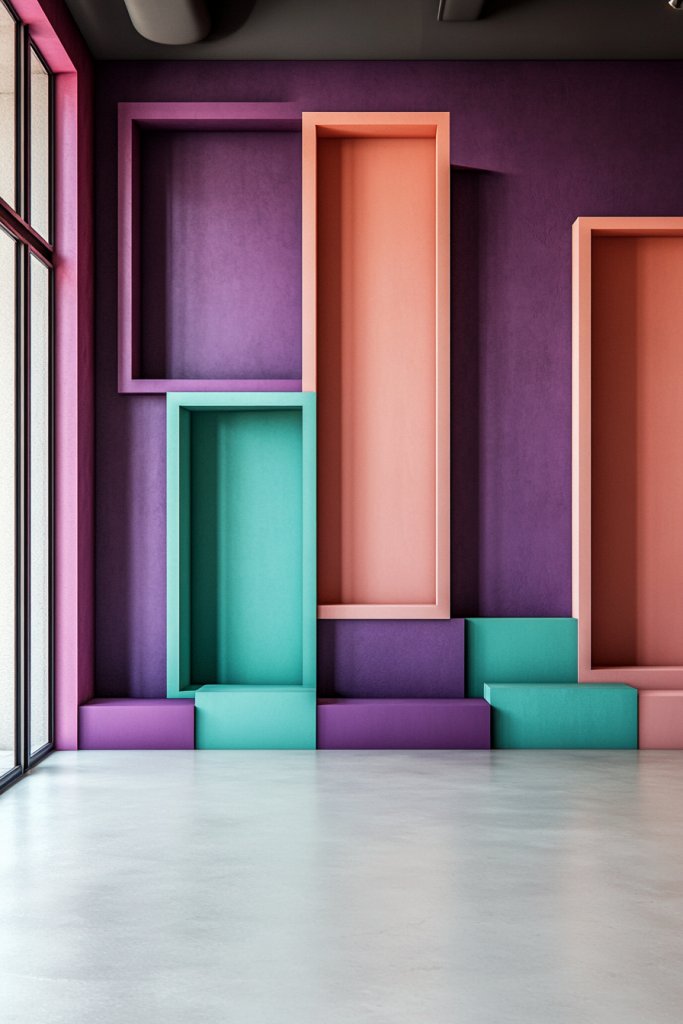 Choose a monochrome palette with shades of the same color for a subtler effect, or go wild with multiple contrasting hues for maximum impact. Use painter’s tape to create clean, sharp lines—measure carefully for precision. Incorporate color blocking on one accent wall or extend it to furniture or ceiling details. You can also experiment with different shapes—triangles, stripes, or irregular forms—for artistic flair.