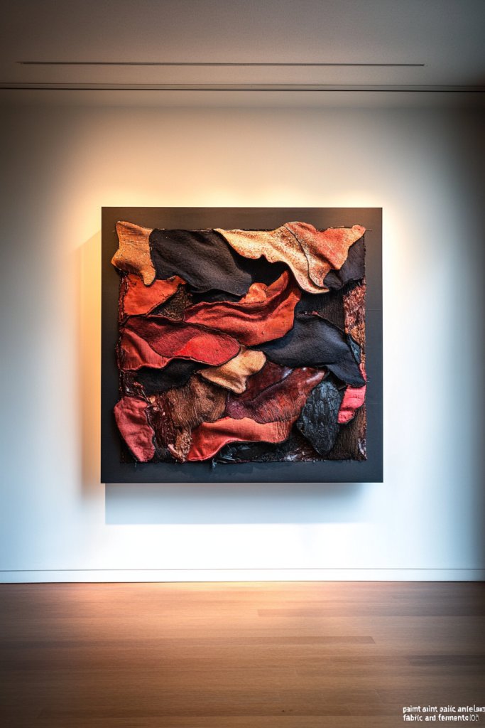 Imagine a large canvas filled with sweeping brushstrokes, splashes of vibrant color, or textured layers of mixed media. The abstract shapes evoke emotion and energy, transforming your wall into a visual playground. The textured paint and layered materials catch the light differently throughout the day, adding depth. It’s a piece that invites viewers to interpret and connect with your mood or personality.