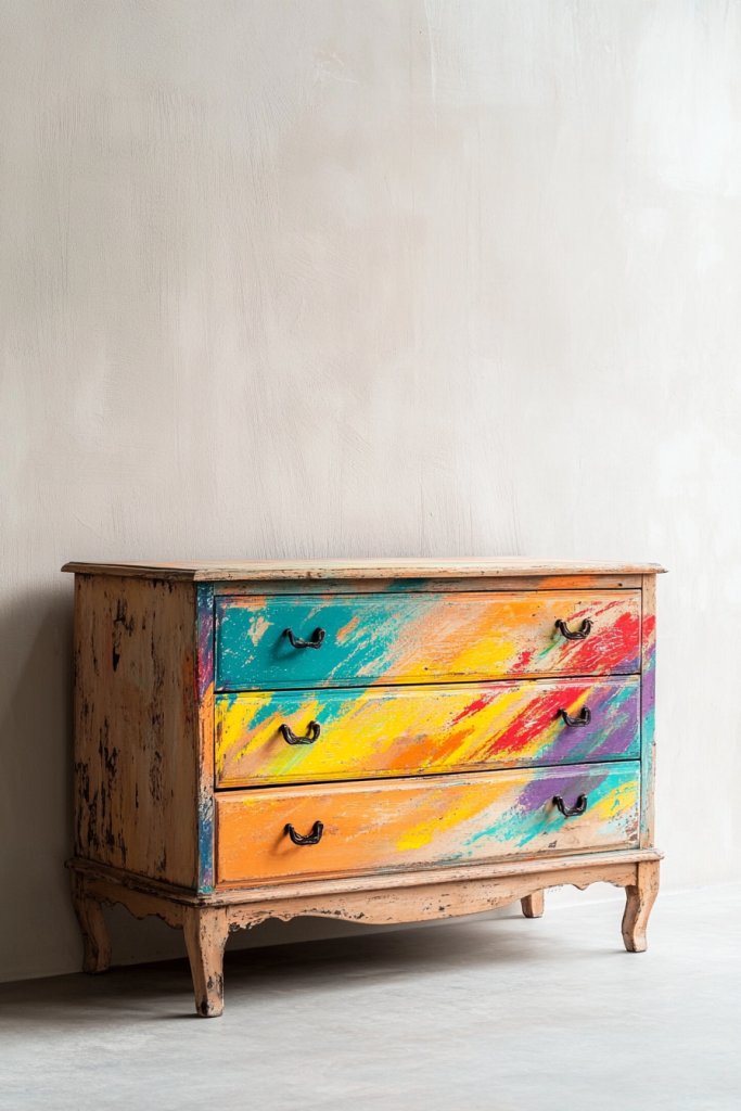 3. Upcycled Vintage Furniture with Artistic Paint Techniques