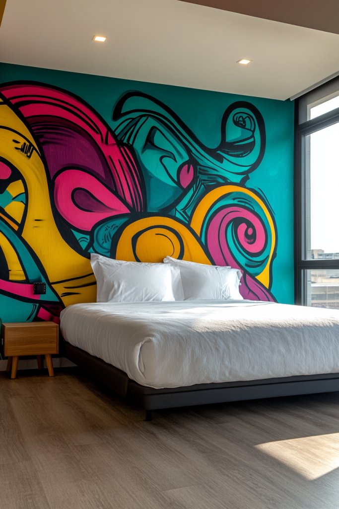 4. Colorful Murals or Wall Stencils for a Statement Wall