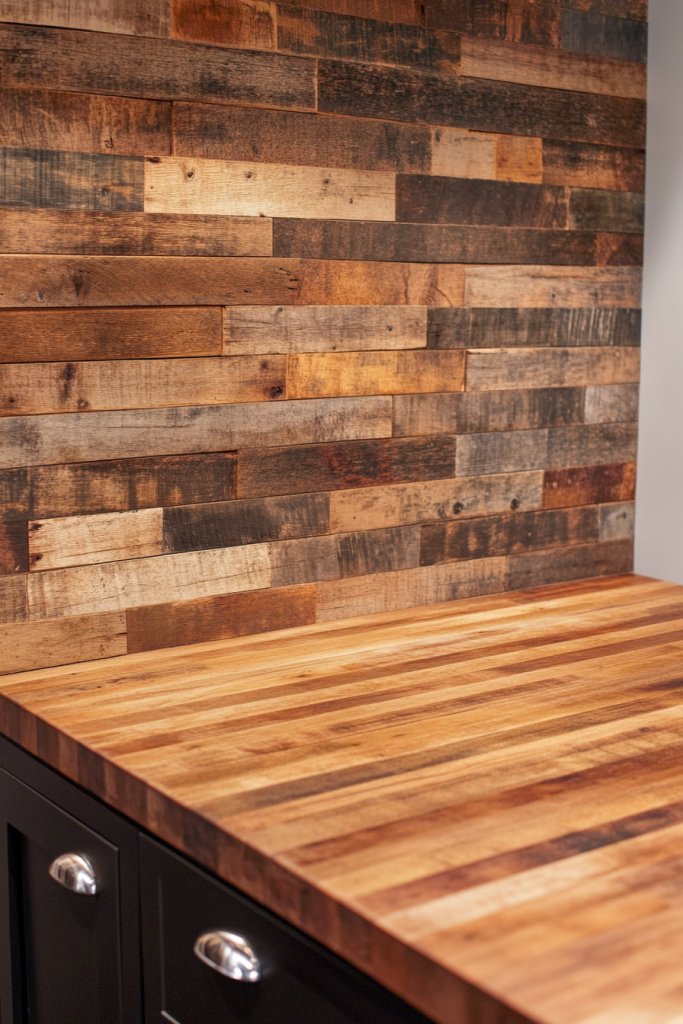 1. Reclaimed Wood Plank Backsplash for Authentic Rustic Appeal