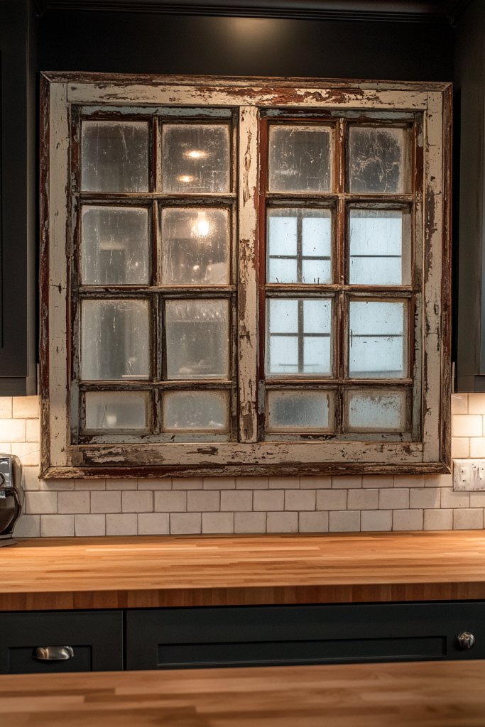 14. Salvaged Window Frames as Unique Backsplash Features