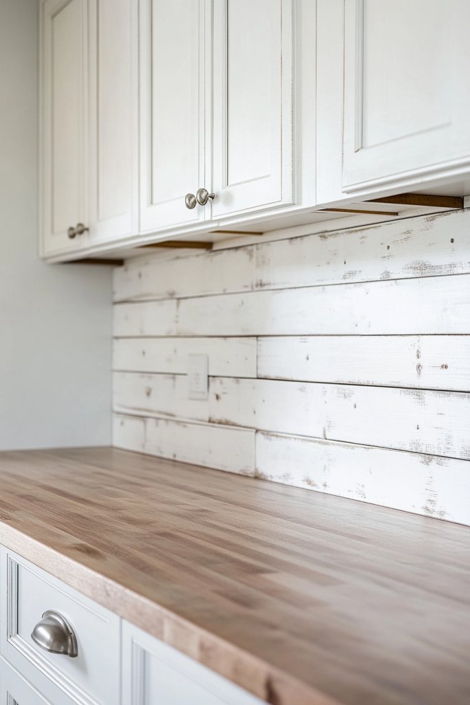 2. Whitewashed Shiplap Backsplash for Bright, Airy Vibes