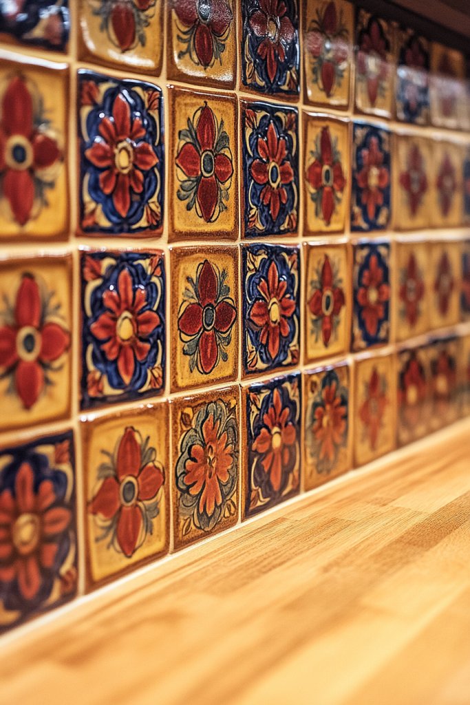 5. Hand-Painted Ceramic Tiles with Rustic Patterns