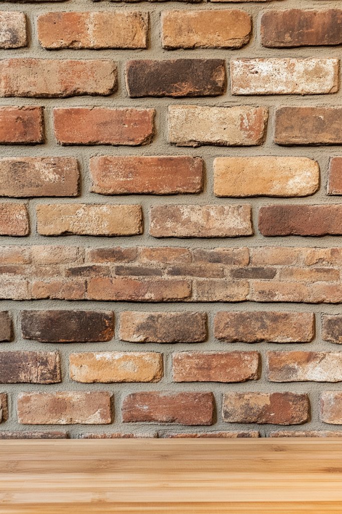 Choose between real brick veneer and high-quality faux options depending on your budget and structural needs. For a more rustic look, opt for bricks with slight irregularities and varied coloring. Pair with vintage accessories or distressed wood shelves for extra charm. Seasonal touches like a woven placemat or a rustic bowl can complement the warmth of the brick.