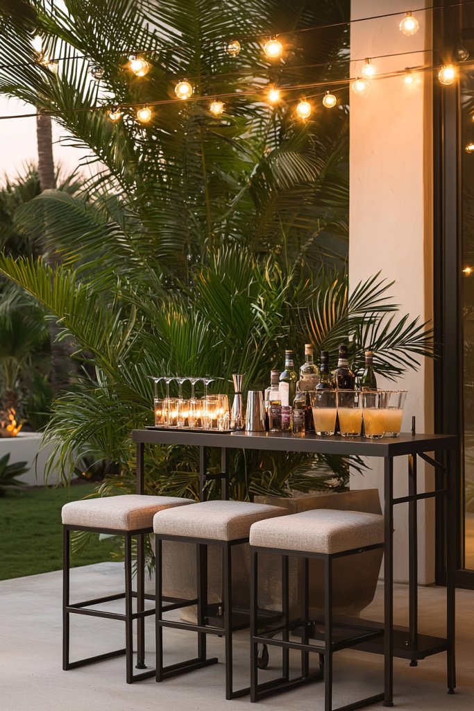 What could be more inviting than a chic bar cart station in your backyard, ready to serve up delightful drinks? Picture a stylish cart adorned with your favorite glassware, colorful cocktail shakers, and vibrant garnishes, all set against a backdrop of lush greenery. This isn’t just a functional piece; it’s a statement of your personal style.