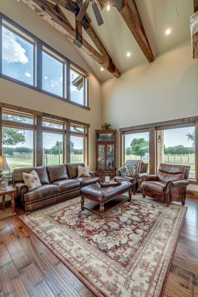 Stylish barn doors can beautifully complement large windows, which are a fantastic way to invite natural light into your barndominium. These expansive windows not only enhance the aesthetic appeal but also create an open, airy atmosphere. Imagine lounging in your living room, sunlight streaming in, illuminating the rustic wood beams and cozy furniture.