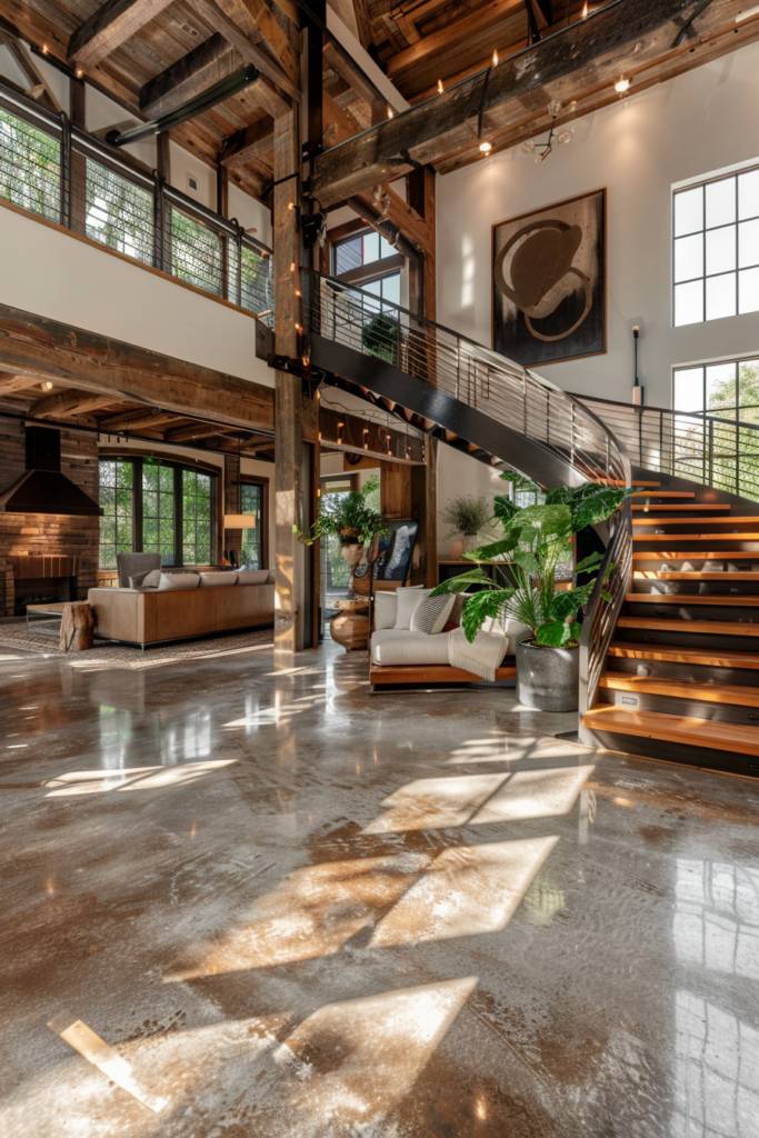 Lighting is another key factor; installing LED strips along the edges or pendant lights above can enhance the ambiance. Ultimately, a unique staircase not only connects levels but also showcases your personal style, making your barndominium truly one-of-a-kind.