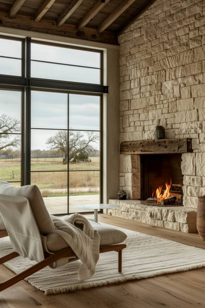 You can choose between traditional wood-burning stoves for that classic feel or sleek gas fireplaces for convenience and efficiency. Surrounding your fireplace with rustic stone or reclaimed wood enhances the modern rustic aesthetic, tying in beautifully with the barndominium’s overall charm.