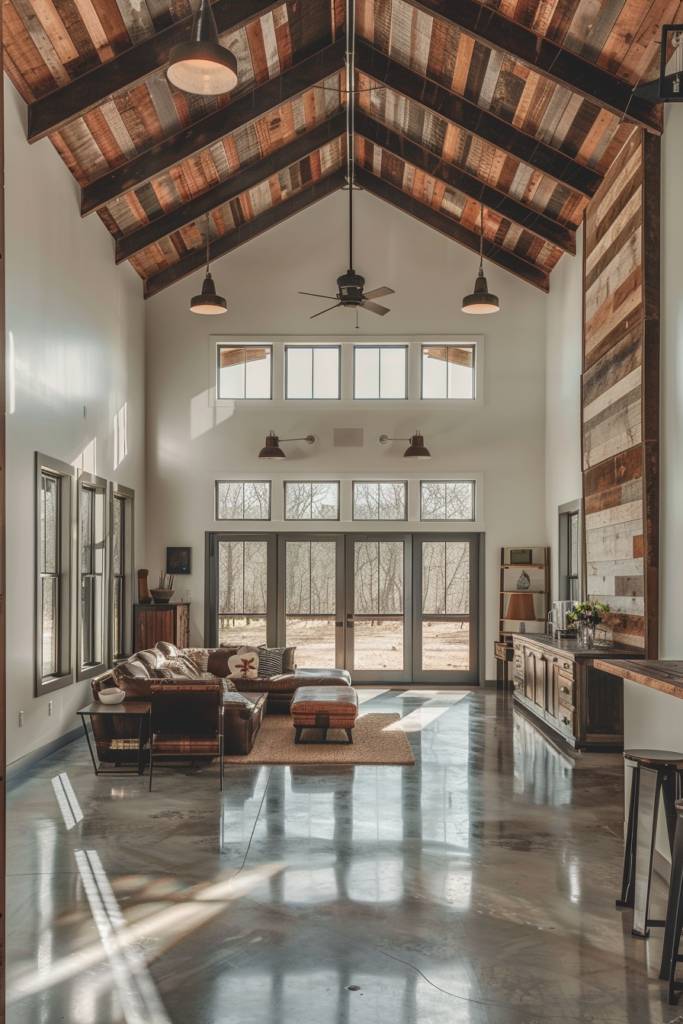 When choosing reclaimed wood, consider mixing different species for a varied look, or stick to one type for a more cohesive design. Either way, you’ll create a stunning foundation that complements your barndominium’s modern rustic appeal perfectly.