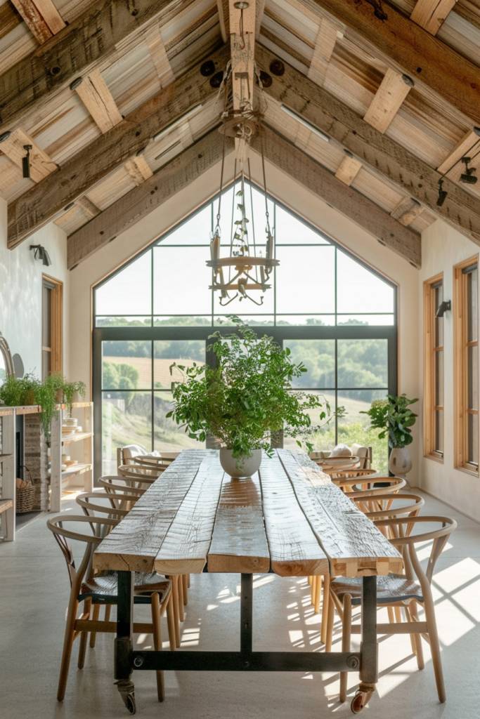 Creating a spacious dining area in your barndominium not only enhances functionality but also fosters a sense of togetherness. Imagine a long, rustic table made of reclaimed wood, surrounded by comfortable seating that invites family and friends to gather. Large windows can flood the space with natural light, creating an inviting atmosphere for shared meals and celebrations.