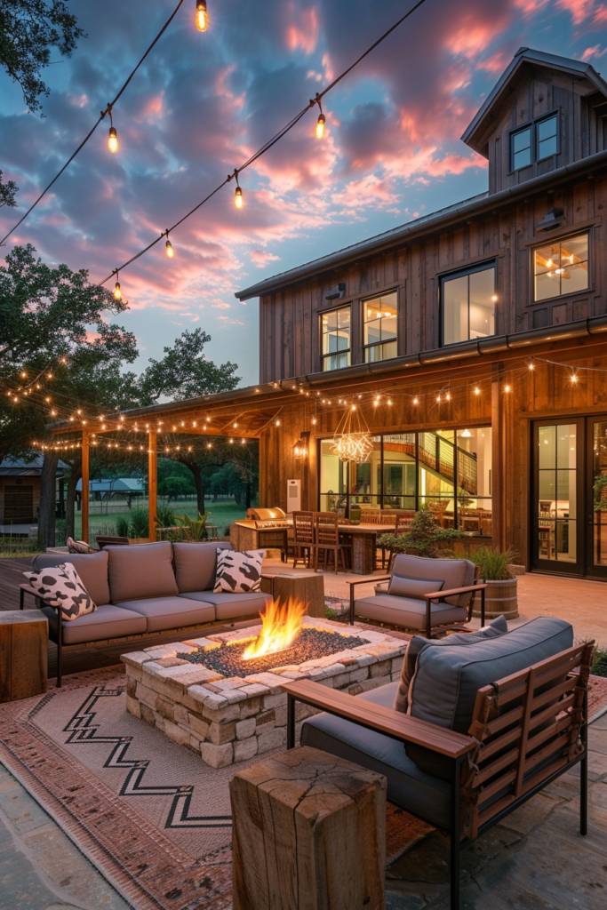 Creating an outdoor living room not only extends your barndominium’s entertaining space but also allows you to fully embrace nature’s beauty. Imagine lounging on comfortable, weather-resistant furniture surrounded by lush greenery and the sounds of chirping birds. Consider adding a rustic coffee table and soft throw pillows to create an inviting atmosphere.