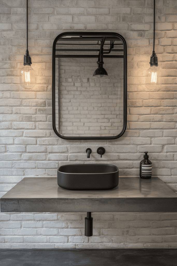 For an industrial-inspired look, pair a rectangular mirror with exposed brick walls and metal fixtures. The sleek black frame of the mirror contrasts perfectly with rugged textures, creating a striking yet balanced design. Edison-style pendant lights enhance the industrial vibe while providing functional illumination.