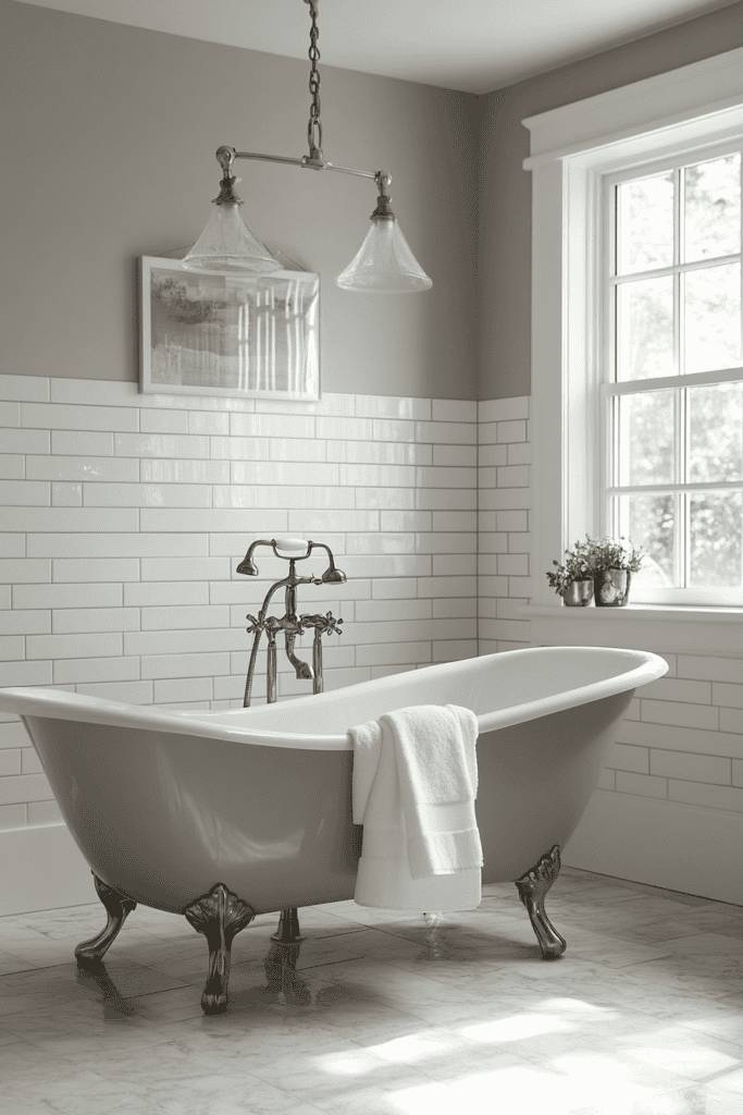 Light gray is a timeless choice for a clean and sophisticated bathroom. It creates a neutral backdrop that pairs beautifully with white subway tiles, clawfoot tubs, and polished nickel fixtures. The understated elegance of this shade adds depth and softness, making it a perfect choice for traditional or minimalist designs.