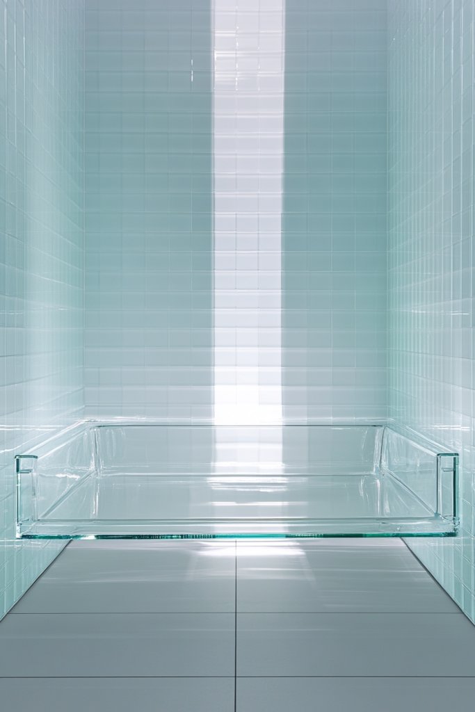 Add a touch of layered lighting—such as LED strips behind the tiles—to make the iridescence pop. Incorporate accessories in metallic finishes that reflect the shimmer, like knobs or showerheads.