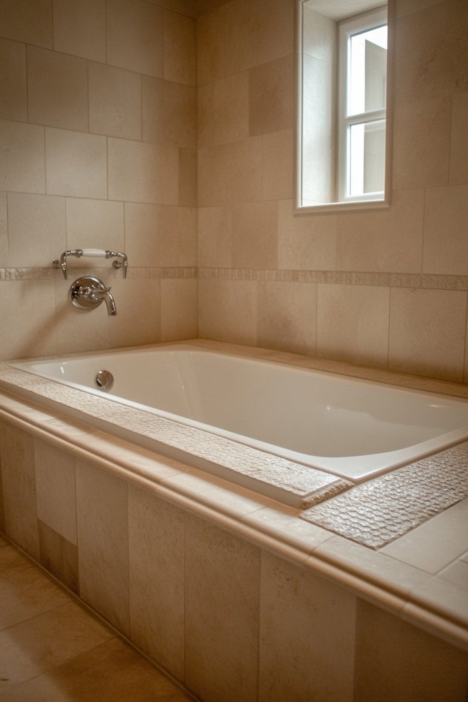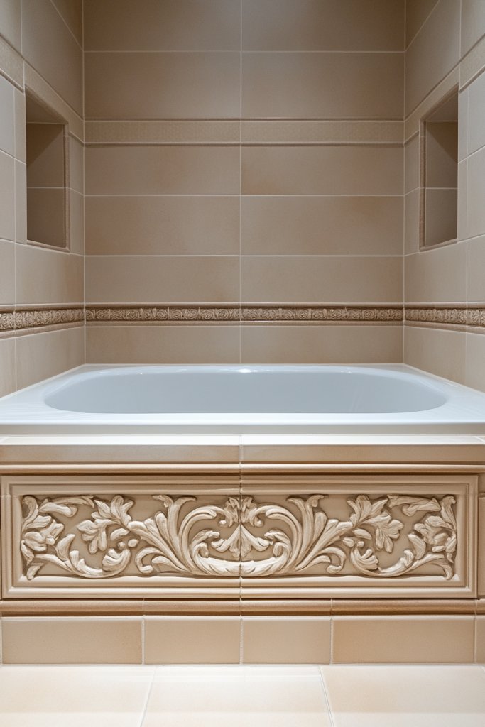 Layered tile borders with intricate molding bring a timeless, architectural feel to your bathroom. They showcase craftsmanship and attention to detail, elevating your space from simple to stunning. With a little effort, you’ll enjoy a classic retreat that feels both elegant and personal.