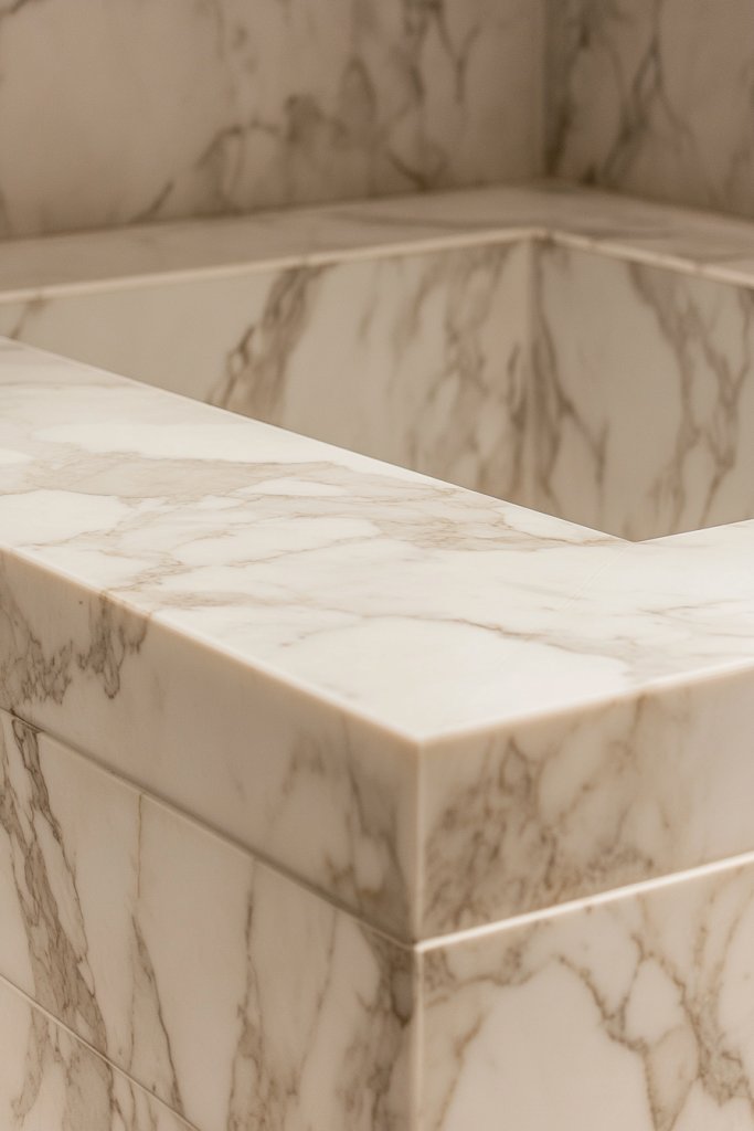 Small decorative elements, like sculptural soap dishes or minimalist hardware, can enhance the luxurious vibe. Marble’s natural beauty and durability make it a smart choice for a lasting upscale look.