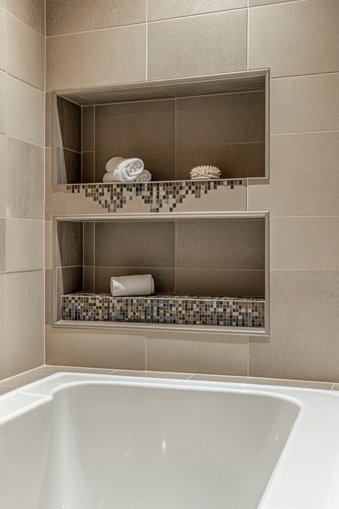20. Integrated Niche Shelves with Contrasting Tile Accents for Practical Beauty