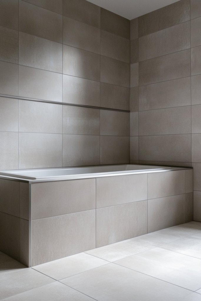 Looking for a bathroom update that’s sleek, modern, and low-maintenance? Oversized ceramic tiles with a matte finish check all those boxes. They create a clean, uncluttered look that feels both sophisticated and effortless.