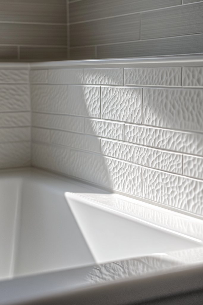 Textured tiles in a vertical layout combine timeless charm with modern edge, making your bathroom uniquely yours. Their tactile quality invites touch and admiration, transforming a simple wall into a piece of art. With a little effort, you can craft a space that’s both functional and incredibly stylish.