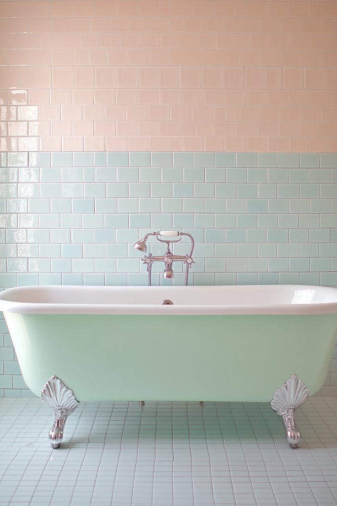 For smaller bathrooms, a vertical herringbone elongates the space visually. If you prefer a softer touch, pastel shades like blush or mint work beautifully.