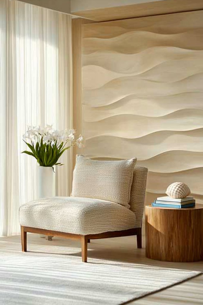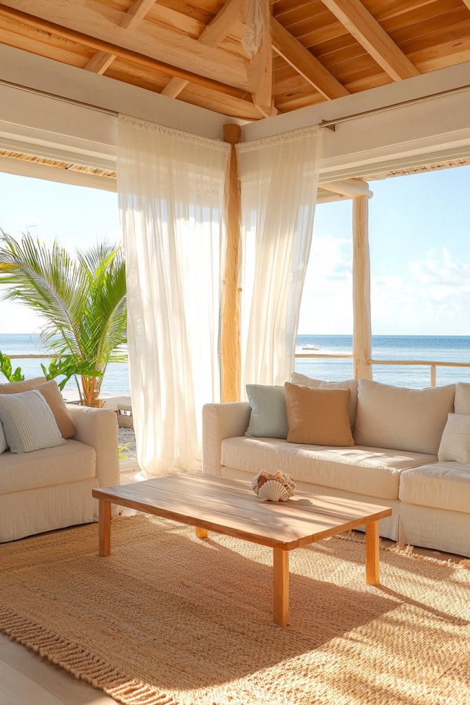 Think sheer linen curtains that flutter with the ocean air or soft cotton throws draped over your sofa, inviting relaxation. Colors like soft whites, sandy beiges, and ocean blues will enhance that serene vibe, making your space feel open and inviting.