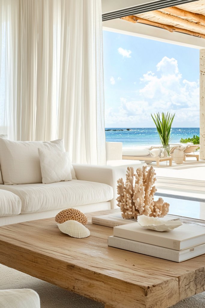 Seashells and coral can instantly transform your space into a coastal retreat. Imagine a simple glass bowl filled with assorted seashells, their textures and colors bringing a touch of the ocean to your coffee table.
