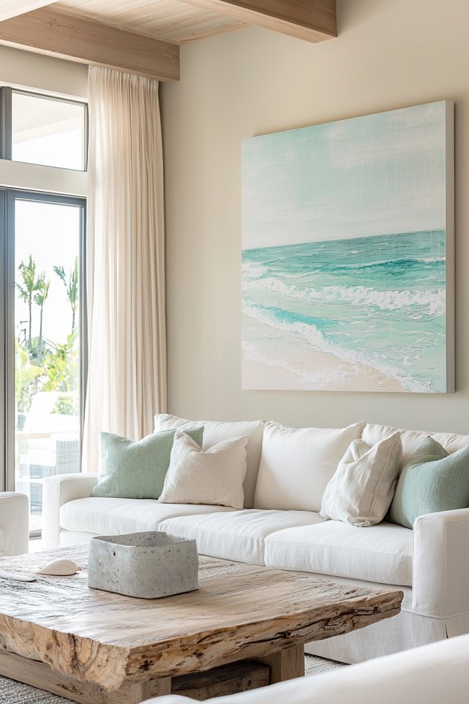 These pieces don’t just adorn your walls; they evoke the calmness and beauty of the ocean right into your living space. Consider incorporating various forms of art, like oversized canvas prints or framed photographs of coastal landscapes.