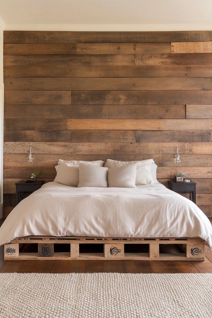 Looking for an eco-friendly way to add character to your bedroom? Reclaimed wood pallets are affordable, sustainable, and full of rustic charm. They give your space an authentic, handcrafted vibe while helping the environment—pretty much a win-win.