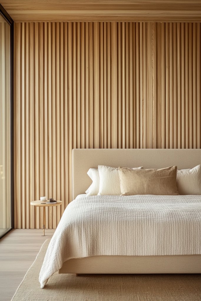 Tired of boring, flat walls that lack character? Vertical wood slats offer a simple yet effective way to add warmth and a modern Scandinavian touch to your bedroom. They bring in natural texture and elevate your space’s style with minimal fuss.